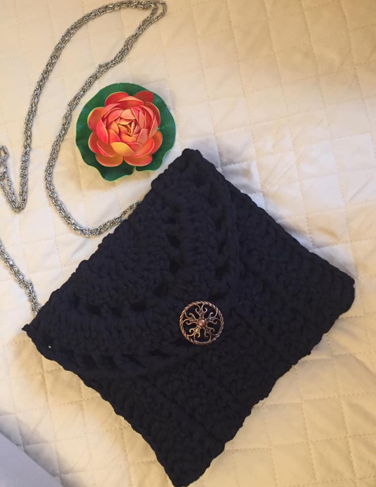 Gentuta crosetata cu fir Ribbon. Culoare negru. Dimensiuni 25/35 cm.